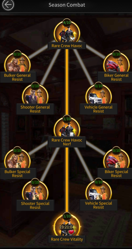 A very important investment is also crew upkeep reduction (in the Criminal Enterprise category). More about that in Troops’ upkeep.