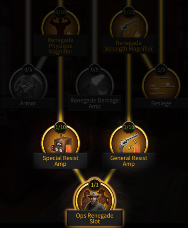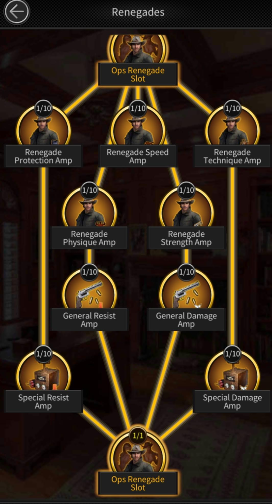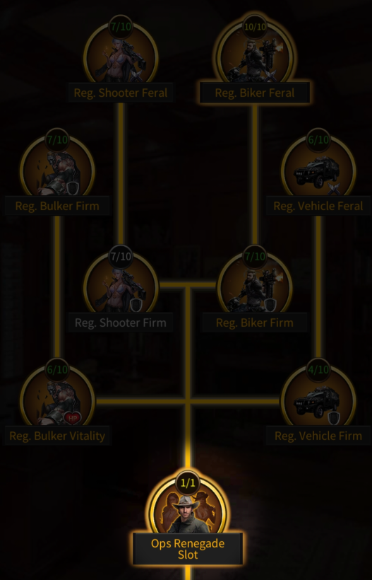 All investments below Ops Renegade Slot must be at least level 1, like it’s shown on a screenshot below.
