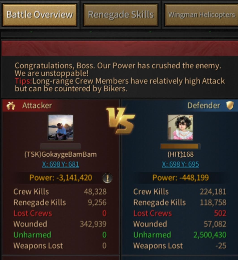 Stats play very important role in the game (beside troops formation, renegades, helicopters…).