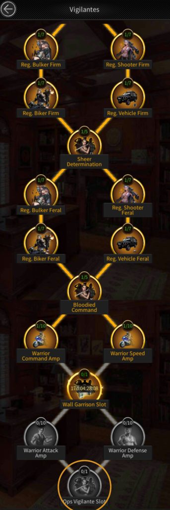 To unlock third vigilante slot you have to level up all these investments to level 1.